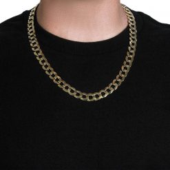 This solid curb chain comes in 14k yellow gold and has a width of 12.18 millimeters.