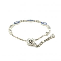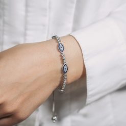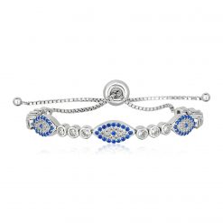 Sterling Silver Adjustable Enameled Evil Eye Bracelet with Cubic Zirconias