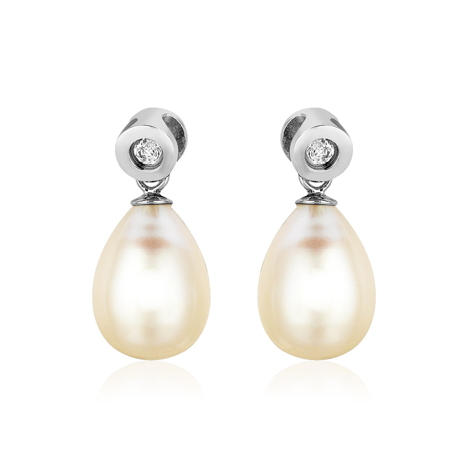 Sterling Silver Earrings with Pear Shaped Freshwater Pearls and Cubic Zirconias